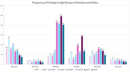 “In younger patients, meniscal and MCL tears were more commonly seen in men, while in older patients, women had more of these types of tears than men, which was unexpected,” Dr. Ghasemi said.