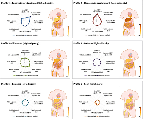 “Most notably, this type does not fit the traditional image of a very obese person, as its actual average BMI ranks only fourth among all categories,” explained Dr. Liu. “The increase is perhaps more in fat proportion. Therefore, if one feature best summarizes this profile, I think, it would be an elevated weight-to-muscle ratio, especially in male individuals.”