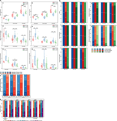Patients were analyzed in subgroups based on lesion size (≤ 3cm or >3cm) and BMI. Objective image quality and subjective scores were compared among BMI subgroups.