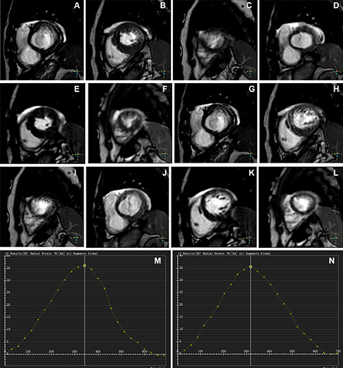 Left ventricular volumetric and strain parameters measured for each method included: end-diastolic volume, end-systolic volume, stroke volume, ejection fraction, peak strain (in the radial, longitudinal, and circumferential directions), and standard deviation of peak strain.
