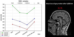 The researchers also looked at how ultramarathon running affects brain volume. Baseline comparison of TEFR participants and controls revealed no significant differences in gray matter volume. At the end of the race, MRI of the brain revealed about a 6.1 percent loss of gray matter volume in the runners. After eight months, gray matter volume had returned to normal levels.