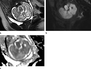 To learn more, Dr. Masselli and colleagues used an MRI technique called diffusion-weighted imaging (DWI) to examine pregnant women who had been referred for suspected fetal or placental abnormality. DWI reveals differences in the mobility of water molecules in tissue and the results can be used to create apparent diffusion coefficient (ADC) maps that provide a measure of local cell density. DWI has been increasingly used for abdominal and pelvic diseases, but has not been tested for the evaluation of the uterine cervix in pregnant patients.