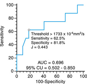 - Cell density measurements derived from DWI results predicted which patients were at greater risk for impending preterm delivery.
