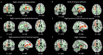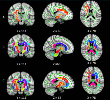 Each participant also underwent brain MRI with a specialized technique called diffusion tensor imaging (DTI). DTI allows researchers to analyze the pattern of water movement along white matter tracts to identify a loss of tract integrity.