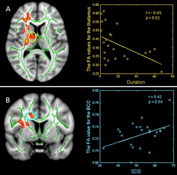 In addition, abnormalities in the thalamus and body corpus callosum—the largest white matter structure in the brain—were associated with the duration of patients' insomnia and score on self-rating depression scale.