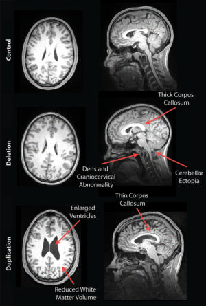 The researchers at UCSF and four other sites performed structural MRI exams on 79 deletion carriers, ranging in age from 1 to 48, and 79 duplication carriers, ages 1 to 63, along with 64 unaffected family members and 109 participants in a control group.