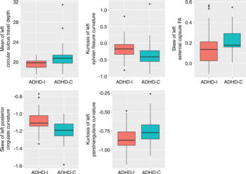 Within the ADHD population, features involved in the default mode network, which is a network of brain regions active when an individual is not engaged in a specific task, and the insular cortex, an area with diverse functions related to emotion, significantly contributed to discriminating the ADHD inattentive subtype from the combined subtype.