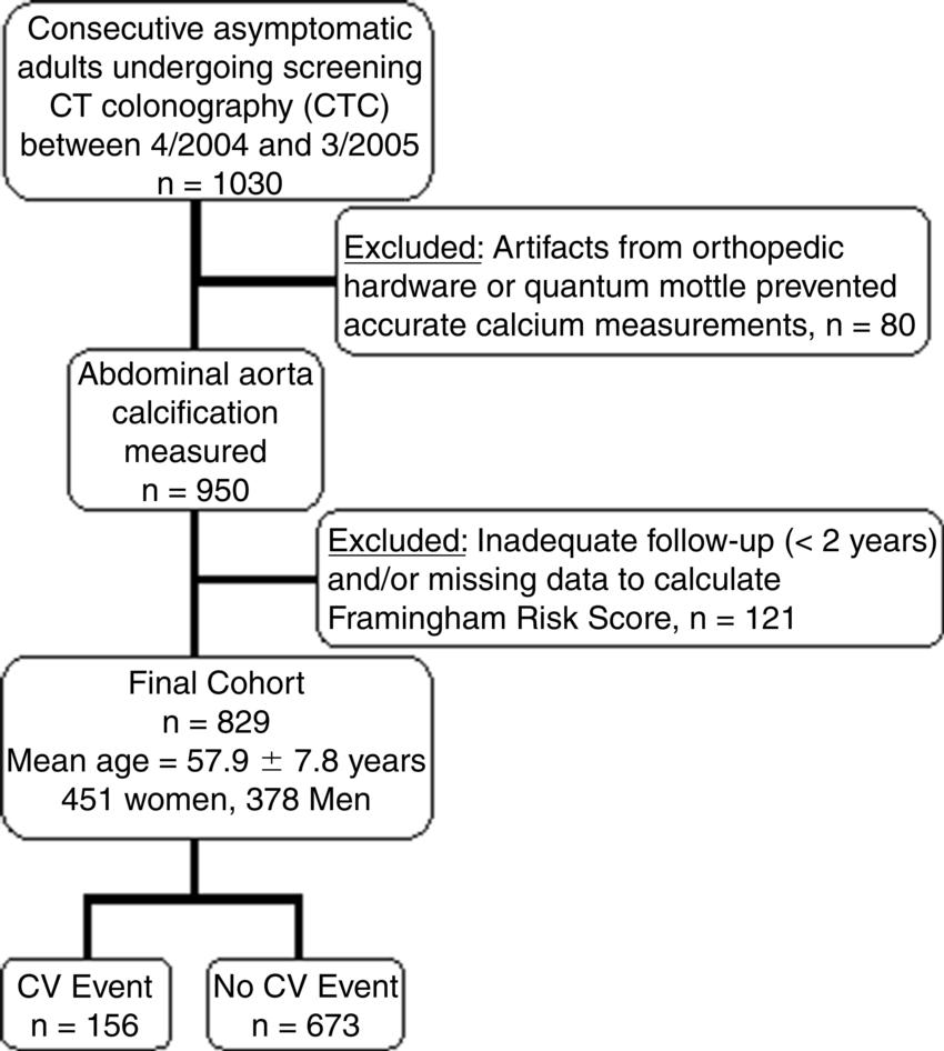 - Researchers assessed the relationship between abdominal aortic calcification on CT and cardiovascular events in 829 asymptomatic patients.