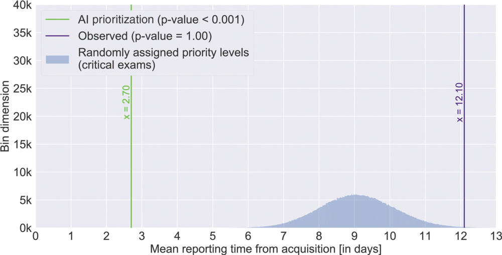 The AI system distinguished abnormal from normal chest X-rays with high accuracy. Simulations showed that critical findings received an expert radiologist opinion in 2.7 days, on average, with the AI approach—significantly sooner than the 11.2-day average for actual practice.