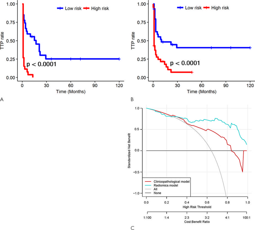 The results showed that the radiomic features derived from within the tumor and the area around the tumor were able to distinguish patients who responded to chemotherapy from those who did not. In addition, the radiomic features predicted time to progression and overall survival.