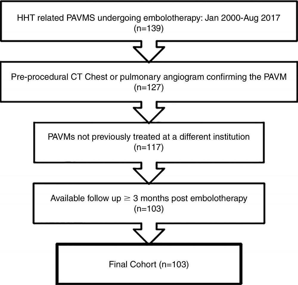 - Researchers looked at 103 patients who underwent embolization for pulmonary arteriovenous malformations.