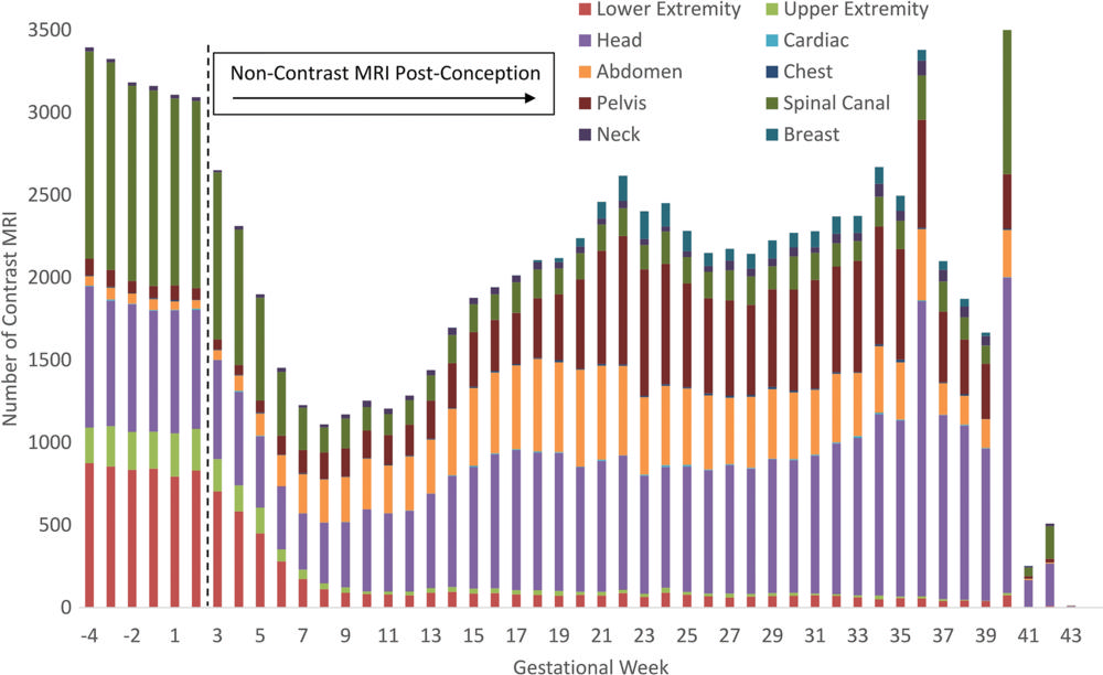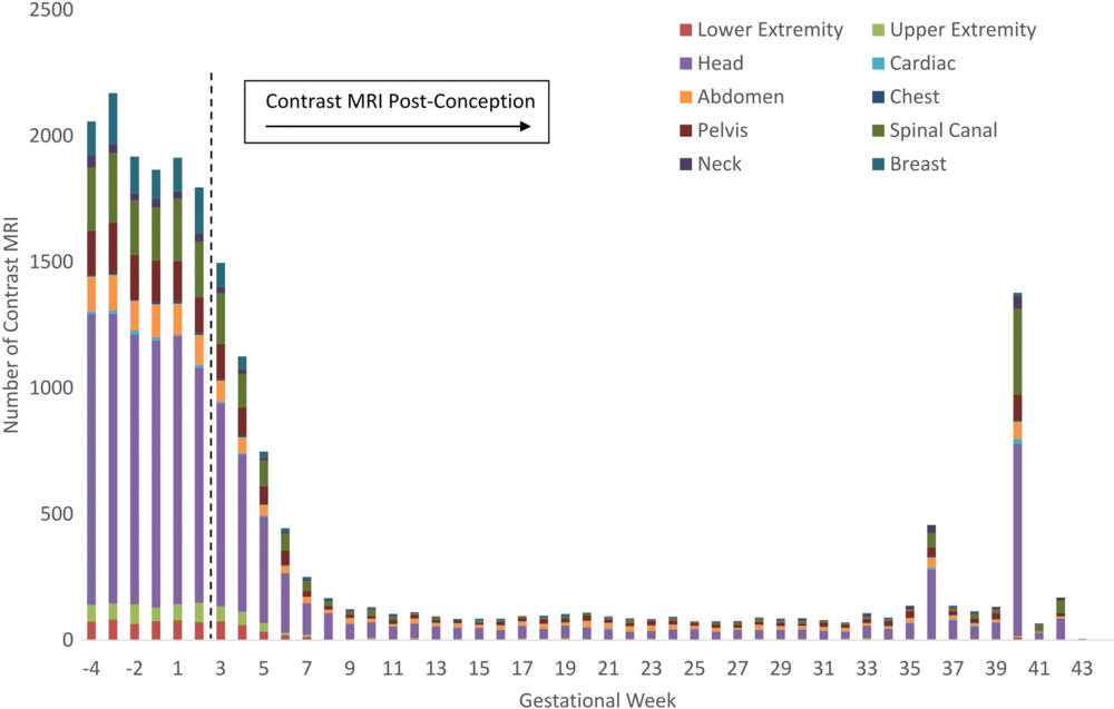 The data revealed exposures to GBCAs in 5,457 of 4,692,744 live births, a number corresponding to one in 860 pregnancies. Most of the exposures came from contrast MRI examinations of the head, although the number of pelvic and abdominal MRIs were also noteworthy. Almost three-quarters of exposures occurred during the first trimester. The results strongly suggested that inadvertent exposure to GBCAs may occur before pregnancy is recognized.
