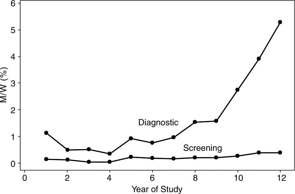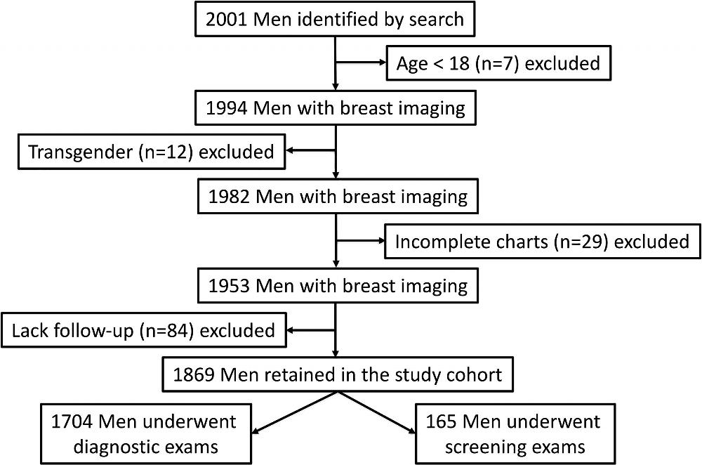 In the first study of its kind, Dr. Gao and colleagues evaluated breast imaging utilization patterns and screening outcomes in 1,869 men, median age 55, who underwent mammography over a 12-year period.