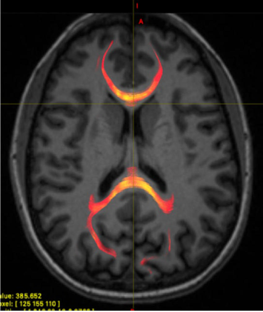 Performance on the test correlated with brain findings on MRI. In the healthy controls, reaction time corresponded with several diffusion measures in the splenium, an area of the corpus callosum located between the right visual cortex and the left language center. No such correlation was found in the concussion patients, suggesting microstructural changes relating to injury.