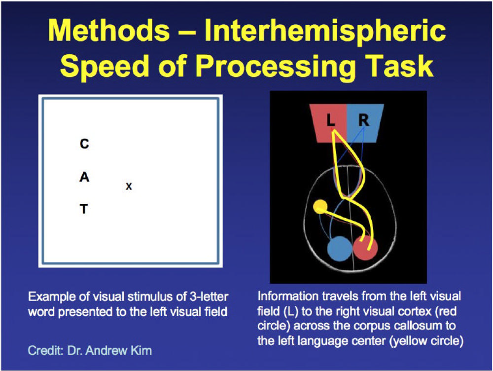 Dr. Wegener and colleagues combined the MRI findings with results from the study's second innovative advance, called an Interhemispheric Speed of Processing Task, a test developed at NYU Langone that evaluates how well the two hemispheres in the brain communicate with each other.