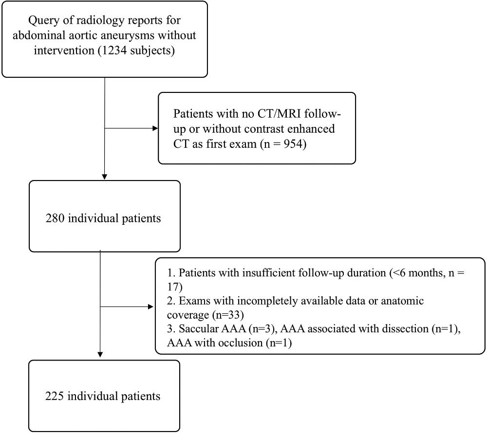 The researchers used high resolution cross-sectional imaging with CT or MRI to assess 225 men with abdominal aortic aneurysm. Follow-up lasted, on average, more than 3 years.
