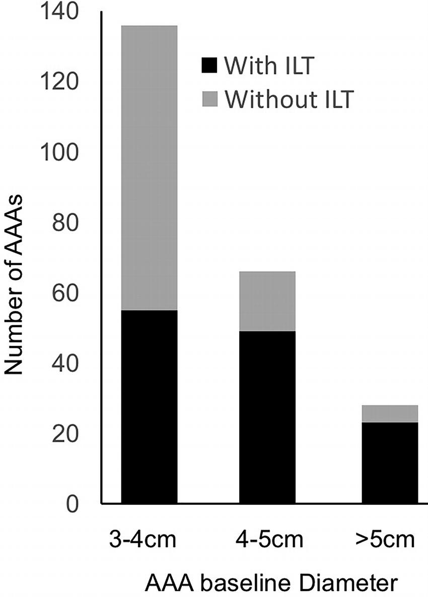 The findings suggest that imaging follow-up schedules may need to be adjusted for patients whose aneurysm has a thrombus. Current protocols for follow-up imaging are based on aneurysm size and do not account for the absence or presence of a thrombus.