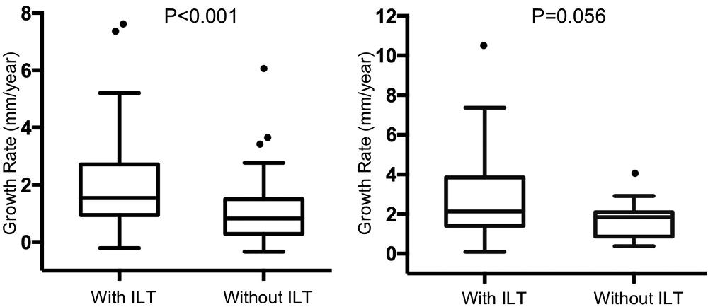 Presence of Blood Clot Associated with Rapid Aortic Aneurysm Growth