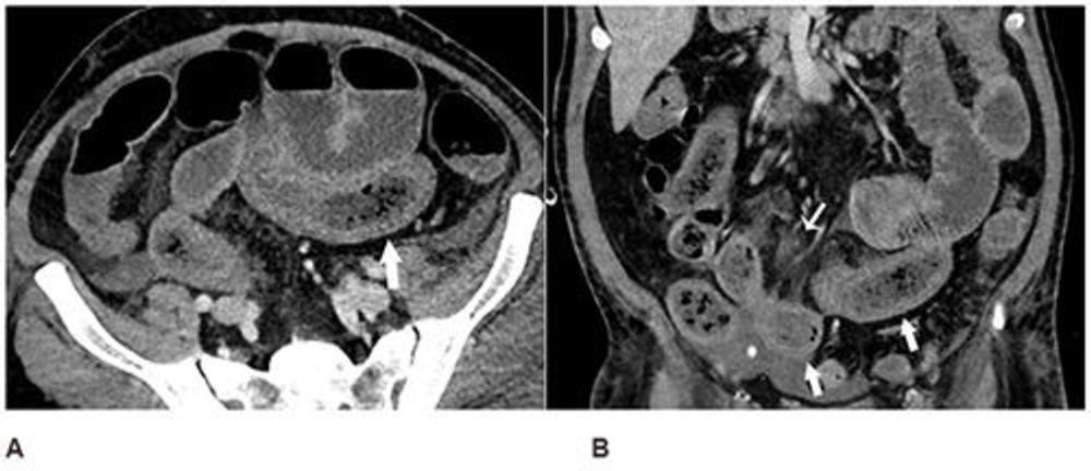 According to the researchers, possible explanations for the spectrum of bowel findings in patients with COVID-19 include direct viral infection, small vessel thrombosis, or nonocclusive mesenteric ischemia. “ACE2 expression is most abundant in lung alveolar epithelial cells, enterocytes of the small intestine, and vascular endothelium suggesting that small bowel and vasculature may be susceptible to SARS-CoV-2 infection,” they wrote.