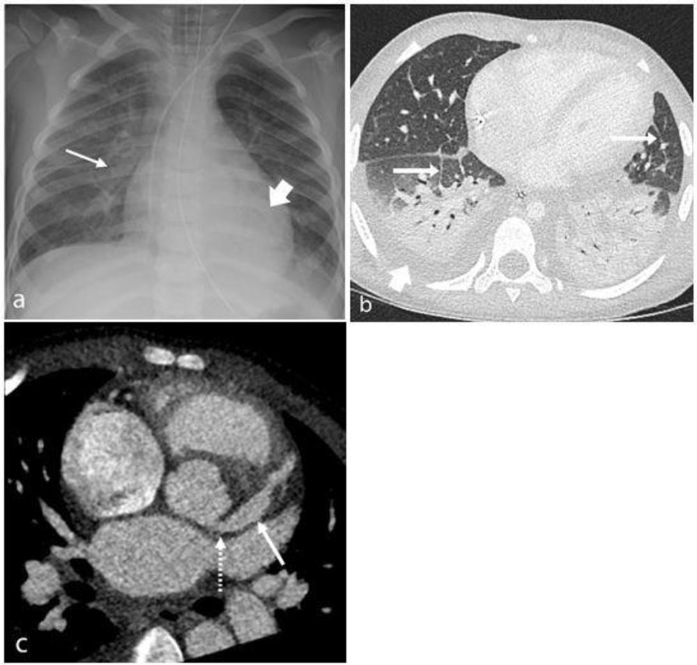 - Imaging findings include airway inflammation, pulmonary edema, coronary artery aneurysms and intra-abdominal inflammation.