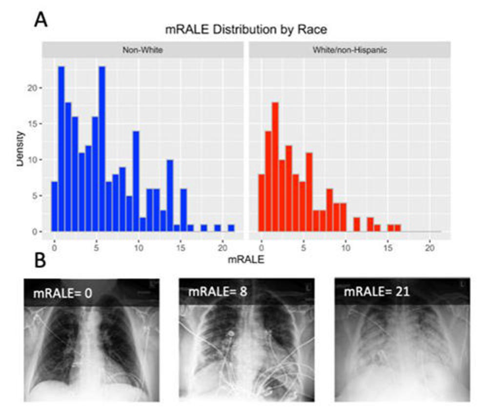 - Upon admission to the hospital, non-white patients with COVID-19 infection are more likely to have more severe disease on chest X-rays than white/non-Hispanic patients.