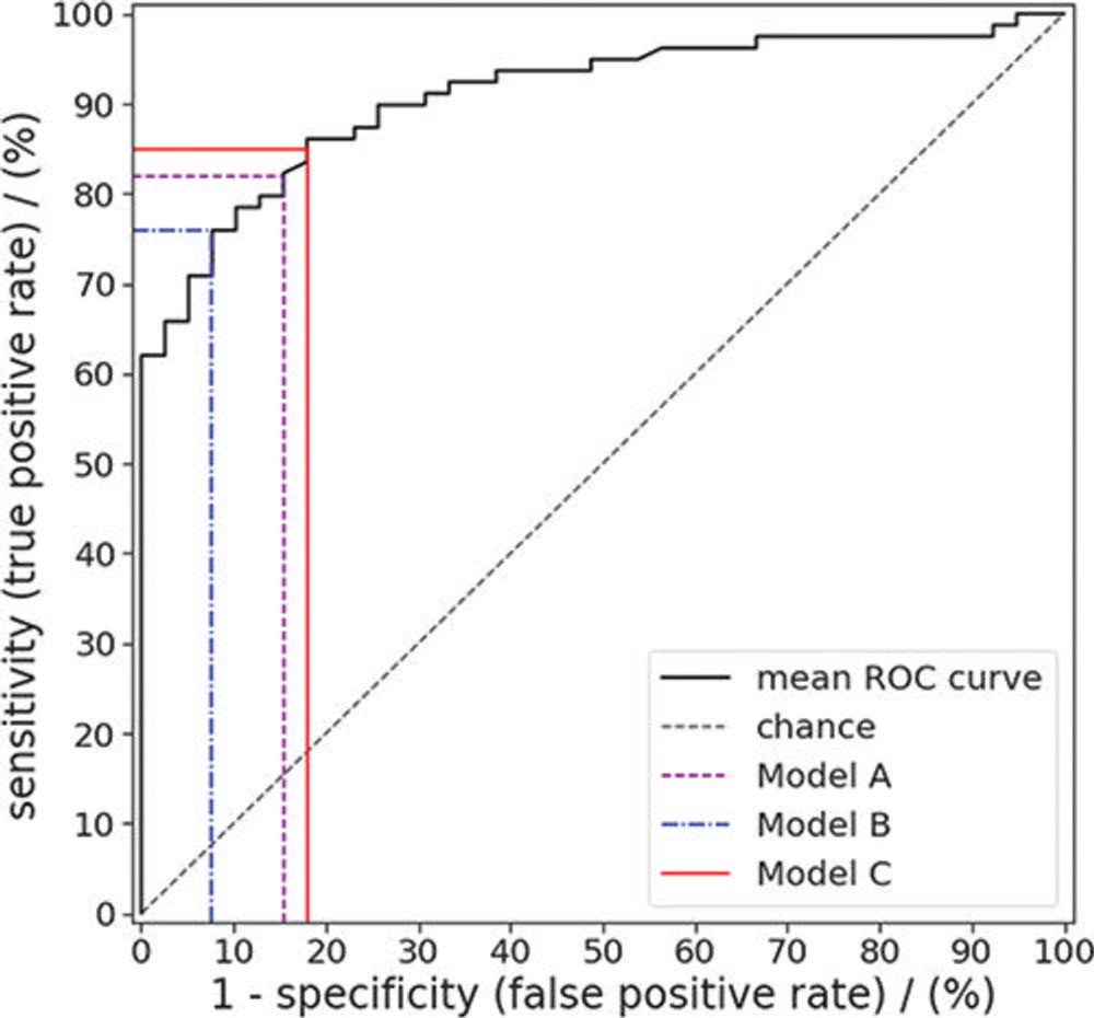 In the test set, the machine learning approach enabled noninvasive differentiation of benign and premalignant CT colonography-detected colorectal polyps, with a sensitivity of 82%, and specificity of 85%. The area under the curve (AUC), a graphical measurement that reflects how much the model is capable of distinguishing between benign and precancerous polyps, was excellent.