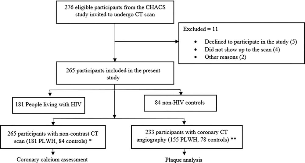 For the new prospective study, researchers compared the burden and CT characteristics of coronary plaque in 265 participants, including 181 asymptomatic people living with HIV without known cardiovascular disease and 84 non-HIV healthy volunteers.