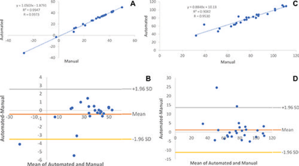 The deep learning model displayed excellent results, demonstrating virtually no difference compared to manual analysis. In addition to the various pancreatic features, the model also analyzed the visceral fat, density and volumes of the surrounding abdominal muscles and organs.