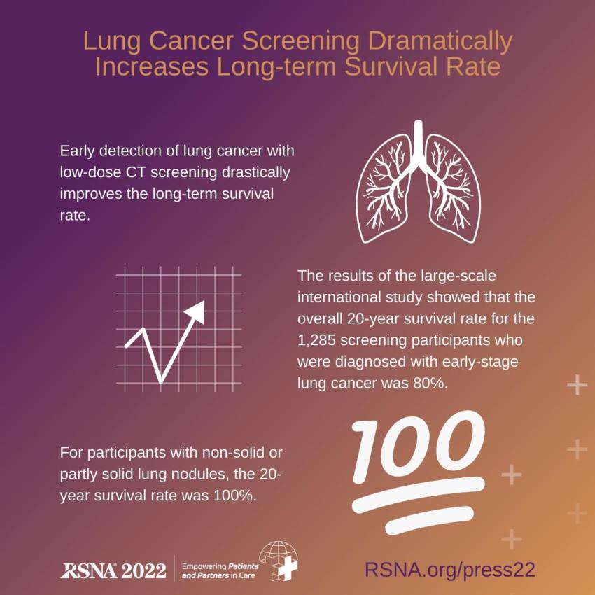 CHICAGO — Diagnosing early-stage lung cancer with low-dose CT screening drastically improves the long-term survival rate of cancer patients, according to a large-scale, 20-year international study being presented next week at the annual meeting of the Radiological Society of North America (RSNA).