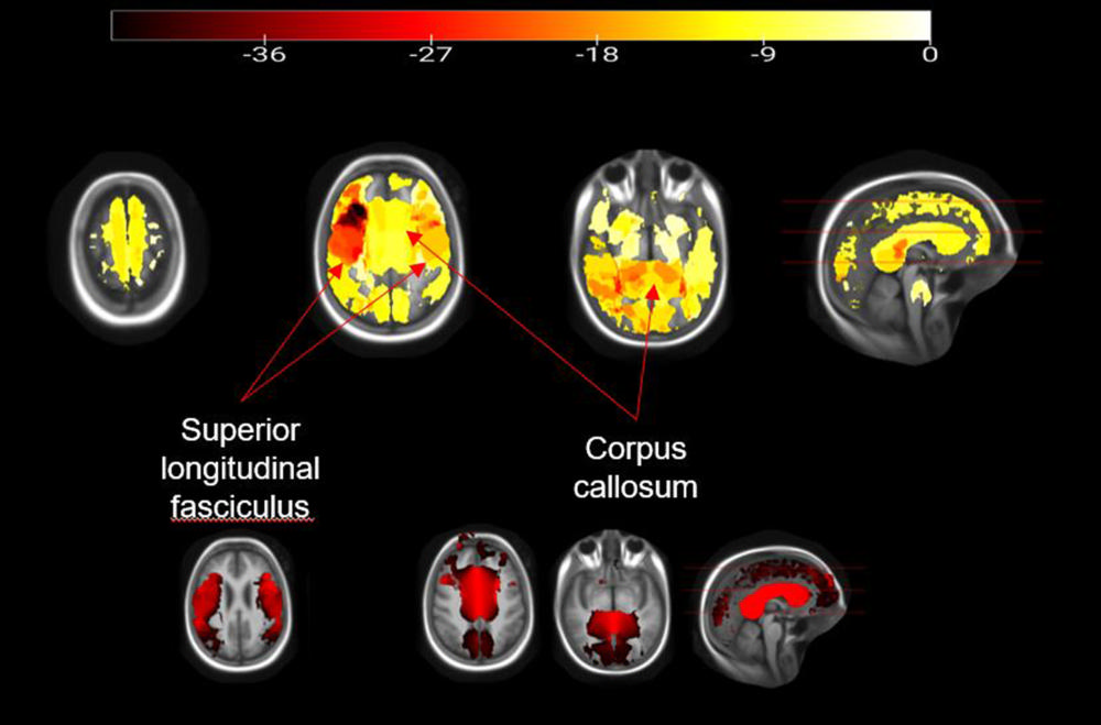 The researchers observed structural brain changes in children with higher weight and BMI z-scores, including significant impairment to the integrity of the white matter. Areas of degradation included the white matter of the corpus callosum, the principal connector between the brain’s two hemispheres, and tracts within the hemispheres that connect the lobes of the brain.