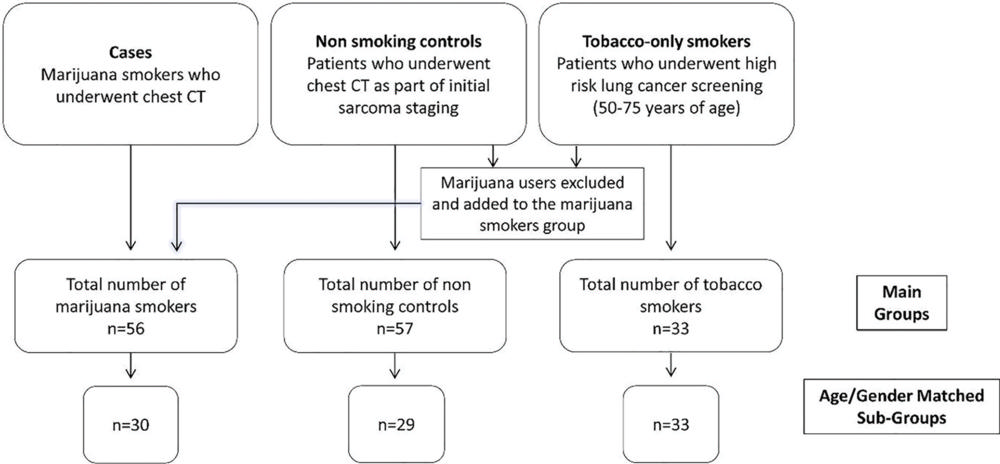 To find out more, Dr. Revah and colleagues compared chest CT results from 56 marijuana smokers with those of 57 non-smoking controls and 33 tobacco-only smokers.