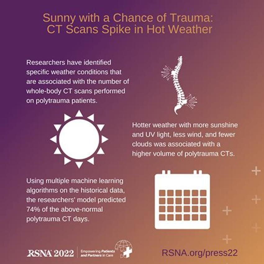 "Trauma accounts for a large portion of hospital admissions, and since polytrauma is particularly time-consuming and unpredictable, we wanted to investigate the association between weather fluctuations and the number of polytrauma CTs performed at our hospital," said study co-author Martin Segeroth, a radiology resident in the Department of Radiology and Nuclear Medicine at the University of Basel in Switzerland.