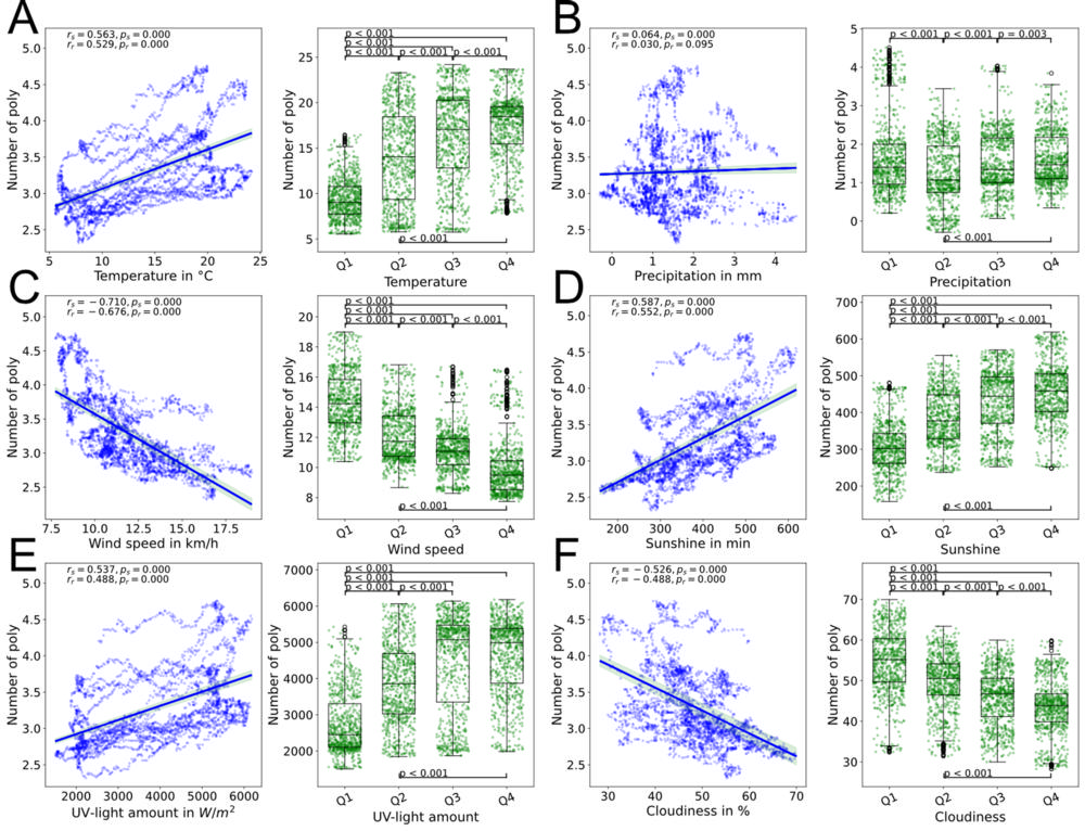 The research team collected daily weather data, including average temperature, total cloud cover, wind speed, sunshine duration and precipitation.