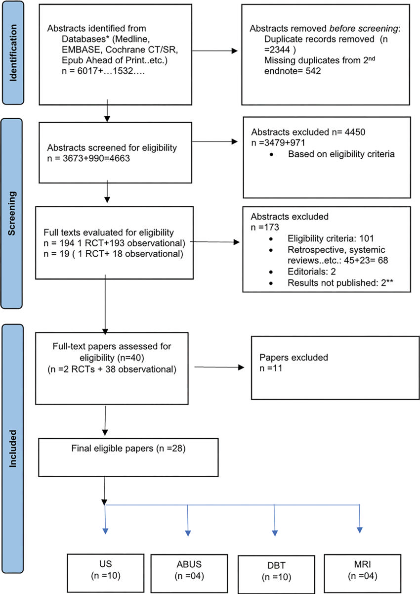 To measure which screening method was the most beneficial to women with dense breasts, researchers conducted a meta-analysis on 22 studies that included 261,233 patients screened for breast cancer. Ten of the studies covered hand-held breast ultrasound, four studies covered automated breast ultrasound, three studies covered breast MRI, and eight studies reported on digital breast tomosynthesis. Of the patients included, 132,166 patients had dense breasts and a negative mammogram.