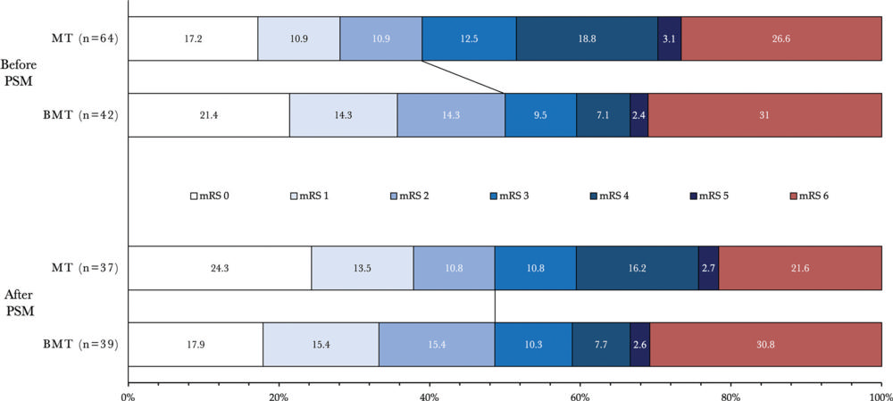 The results showed that thrombectomy was a safe and technically feasible option. Within the first 24 hours after treatment, thrombectomy patients had similar outcomes to those who received best medical treatment alone with or without intravenous thrombolysis. Longer term, both groups had similar clinical and functional outcomes. Mortality rates were similar in both groups.