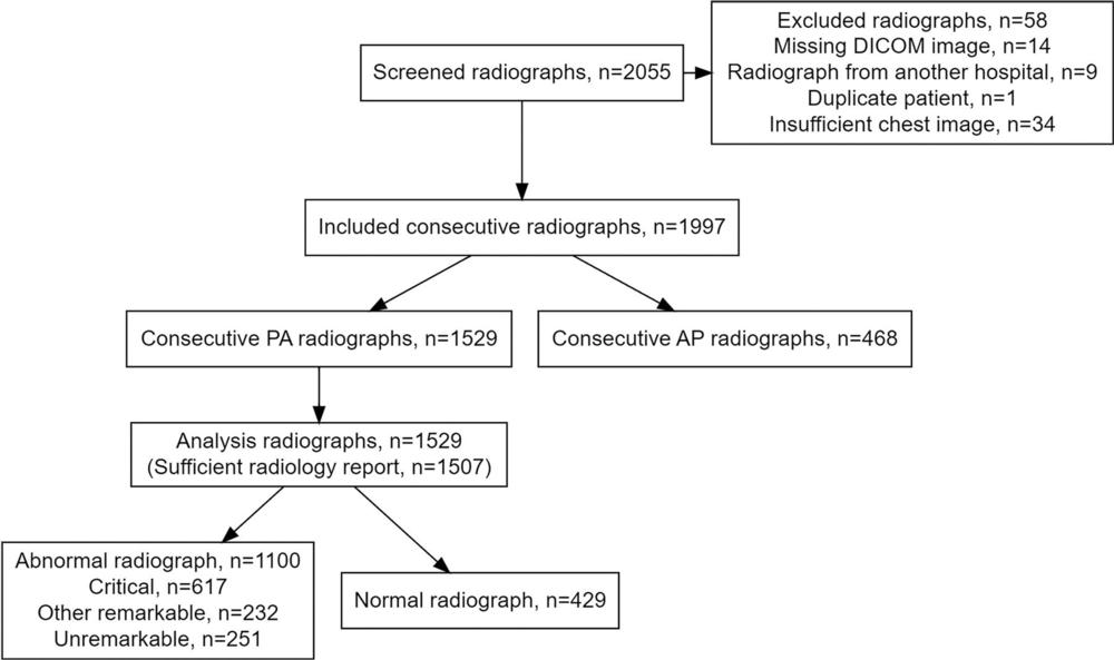 Two board-certified thoracic (chest) radiologists were used as the reference standard. A third radiologist was used in cases of disagreements, and all three physicians were blinded to the AI results.