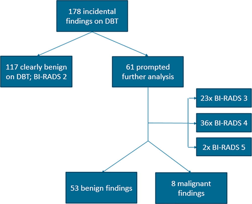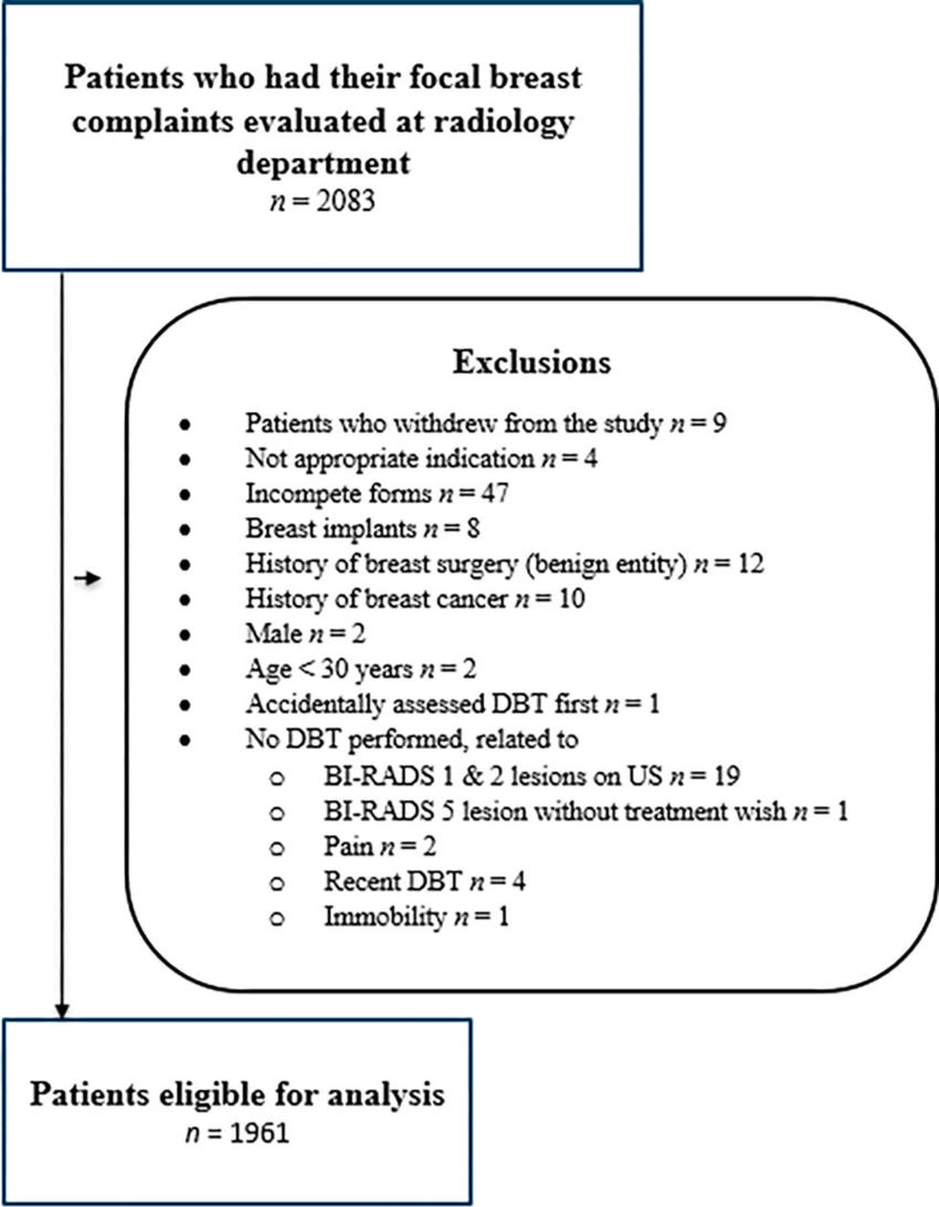 In all patients, targeted ultrasound was evaluated first, followed by DBT. Biopsy was performed after ultrasound, if needed. Since the ultrasounds were conducted first, the radiologists who participated in the study weren’t influenced by the DBT images when interpreting the ultrasounds.
