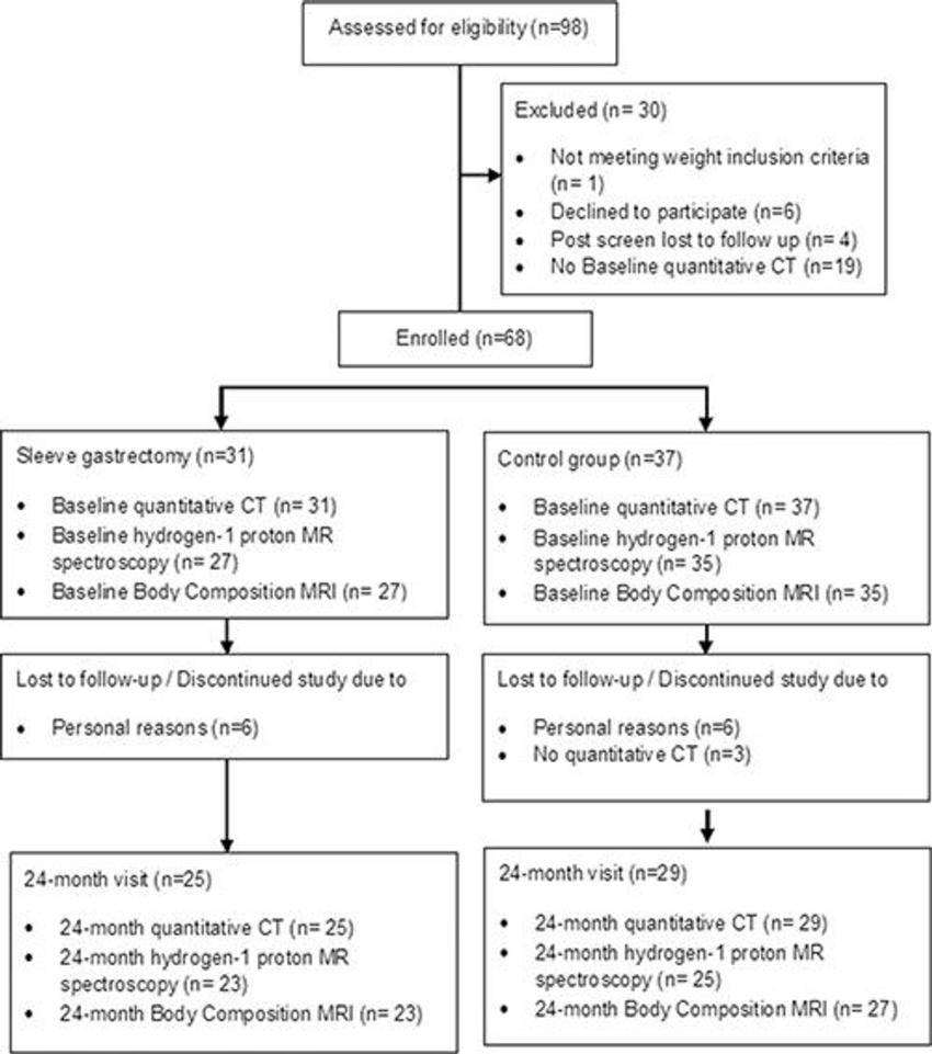 Studies have shown that bone marrow fat responds to changes in nutrition and may serve as a biomarker for bone quality. Therefore, patients underwent proton MR spectroscopy to quantify bone marrow fat of the lumbar spine.