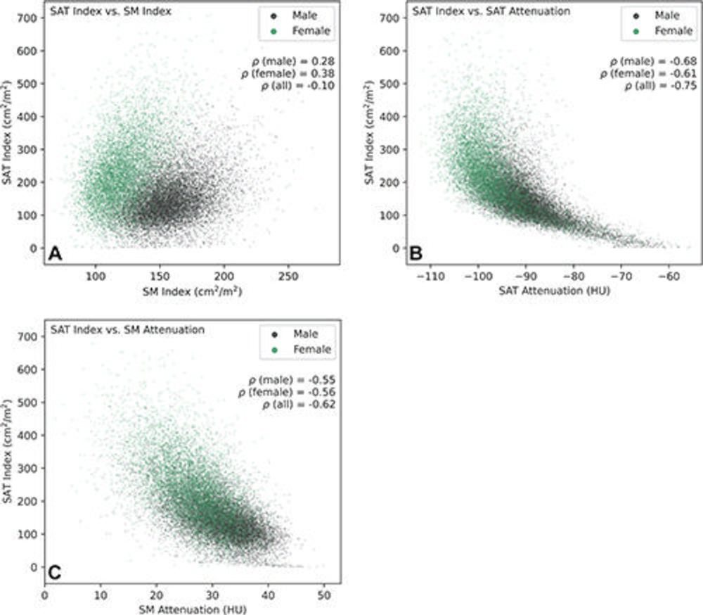 Measurements associated with fat found within a muscle were particularly strong predictors of mortality—a finding consistent with existing research. Infiltration of skeletal muscle with fat, a condition known as myosteatosis, is now thought to be more predictive for health outcomes than reduced muscle bulk.