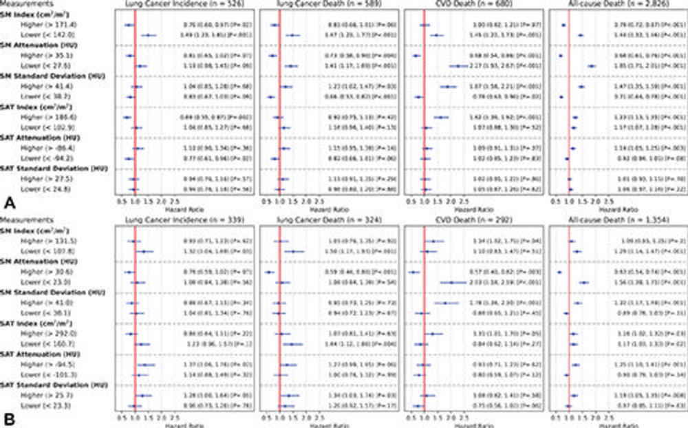 "Automatic AI body composition potentially extends the value of lung screening with low-dose CT beyond the early detection of lung cancer," Xu said. "It can help us identify high-risk individuals for interventions like physical conditioning or lifestyle modifications, even at a very early stage before the onset of disease."