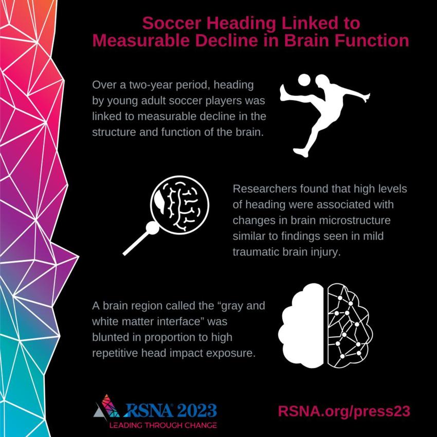 CHICAGO — New research being presented this week at the annual meeting of the Radiological Society of North America (RSNA) links soccer heading – where players hit the ball with their head – to a measurable decline in the microstructure and function of the brain over a two-year period.