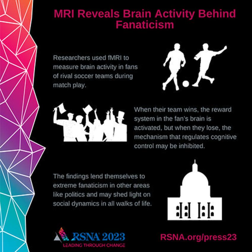 CHICAGO — Soccer fans exhibit different patterns of brain activation while watching a match that may trigger positive and negative emotions and behaviors, according to research being presented next week at the annual meeting of the Radiological Society of North America (RSNA). The researchers say the implication of these findings could extend beyond sports to fanaticism in other areas, such as politics.