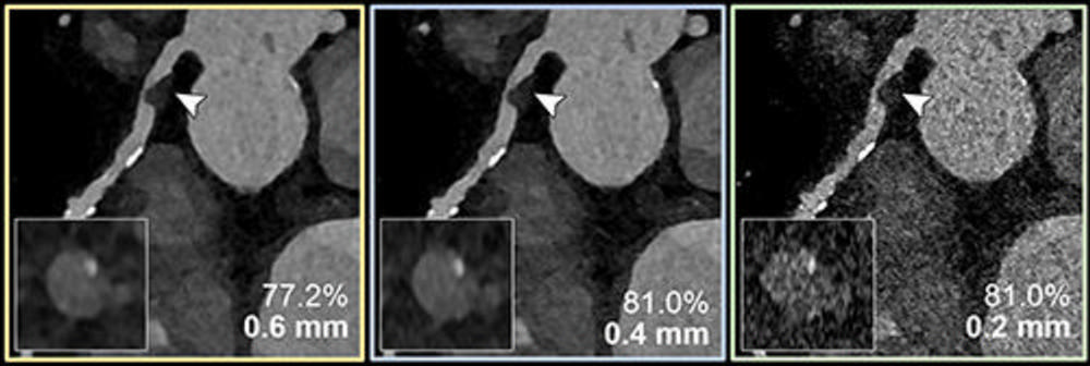 "We found that ultrahigh-spatial-resolution reconstructions resulted in significant changes in recommendations for over 50% of patients," Dr. Emrich said. "The impact was particularly notable in cases with calcified plaques, where ultrahigh-spatial-resolution reduced the overestimation of stenosis."