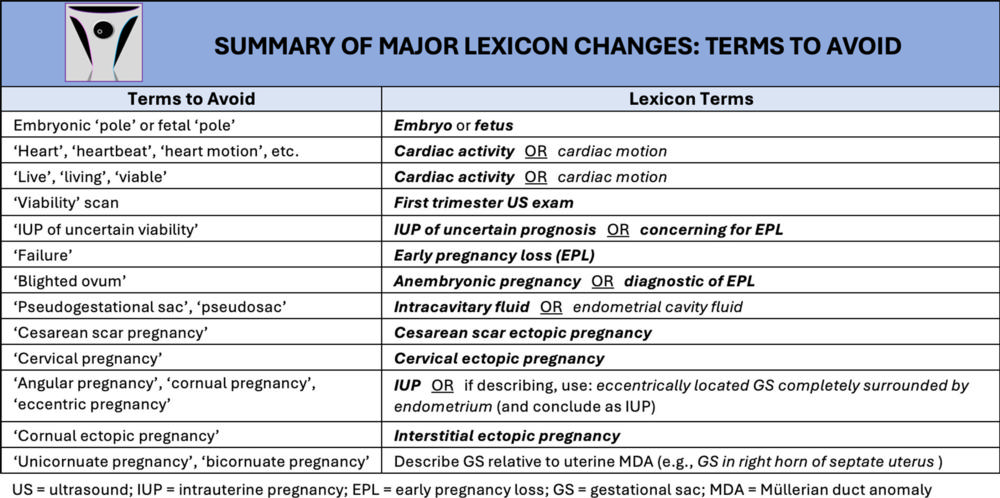 The panel was convened by the Society of Radiologists in Ultrasound (SRU). Other societies participating in the development of the lexicon included the Society of Abdominal Radiology, the American College of Radiology, the American College of Obstetricians and Gynecologists, the American Institute of Ultrasound in Medicine, the Society for Maternal-Fetal Medicine, the American Society of Reproductive Medicine, the Society of Family Planning and the American College of Emergency Physicians.