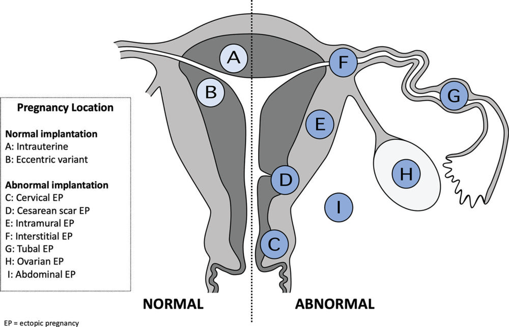 According to the recommendations, an intrauterine pregnancy is defined as a pregnancy implanted in a normal location, while an embryo implanted in any abnormal location, whether inside (such as within a cesarean scar) or outside the uterus, is an ectopic pregnancy.