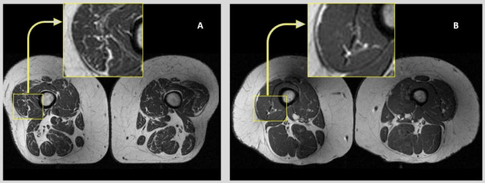 “Research from our group and others has previously shown that quantitative and functional decline in thigh muscles is potentially associated with onset and progression of knee osteoarthritis,” Dr. Akkaya said. “On MRI images, this decline can be seen as fatty degeneration of the muscle, where streaks of fat replace muscle fibers.”