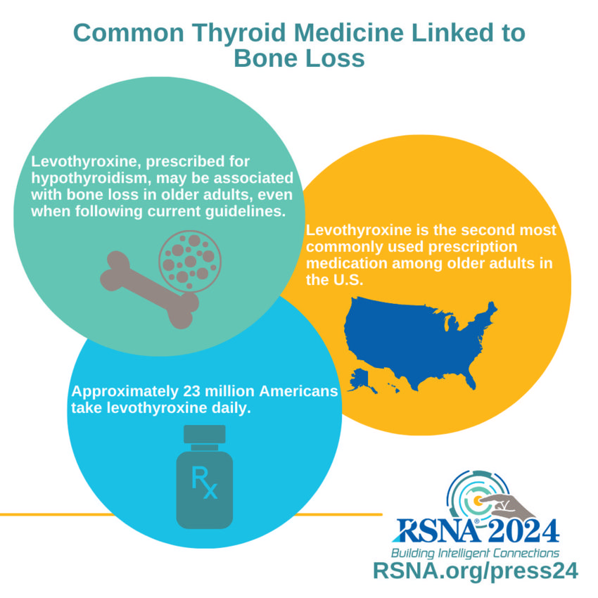 CHICAGO — Levothyroxine, the second most commonly prescribed medication among older adults in the U.S., may be associated with bone loss, according to a study being presented next week at the annual meeting of the Radiological Society of North America (RSNA).