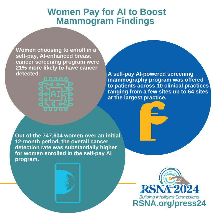 CHICAGO — More than a third of women across 10 health care practices chose to enroll in a self-pay, artificial intelligence (AI)-enhanced breast cancer screening program, and the women who enrolled were 21% more likely to have cancer detected, according to research being presented today at the annual meeting of the Radiological Society of North America (RSNA).