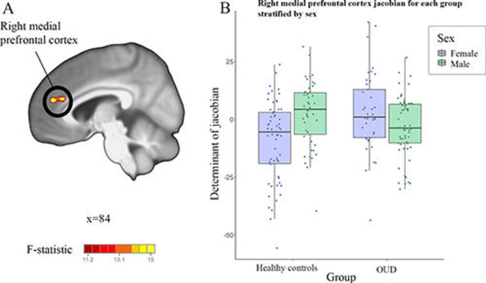 The results also revealed that women in the group with opioid use disorder had smaller medial prefrontal cortex volume, compared to males in the same group.