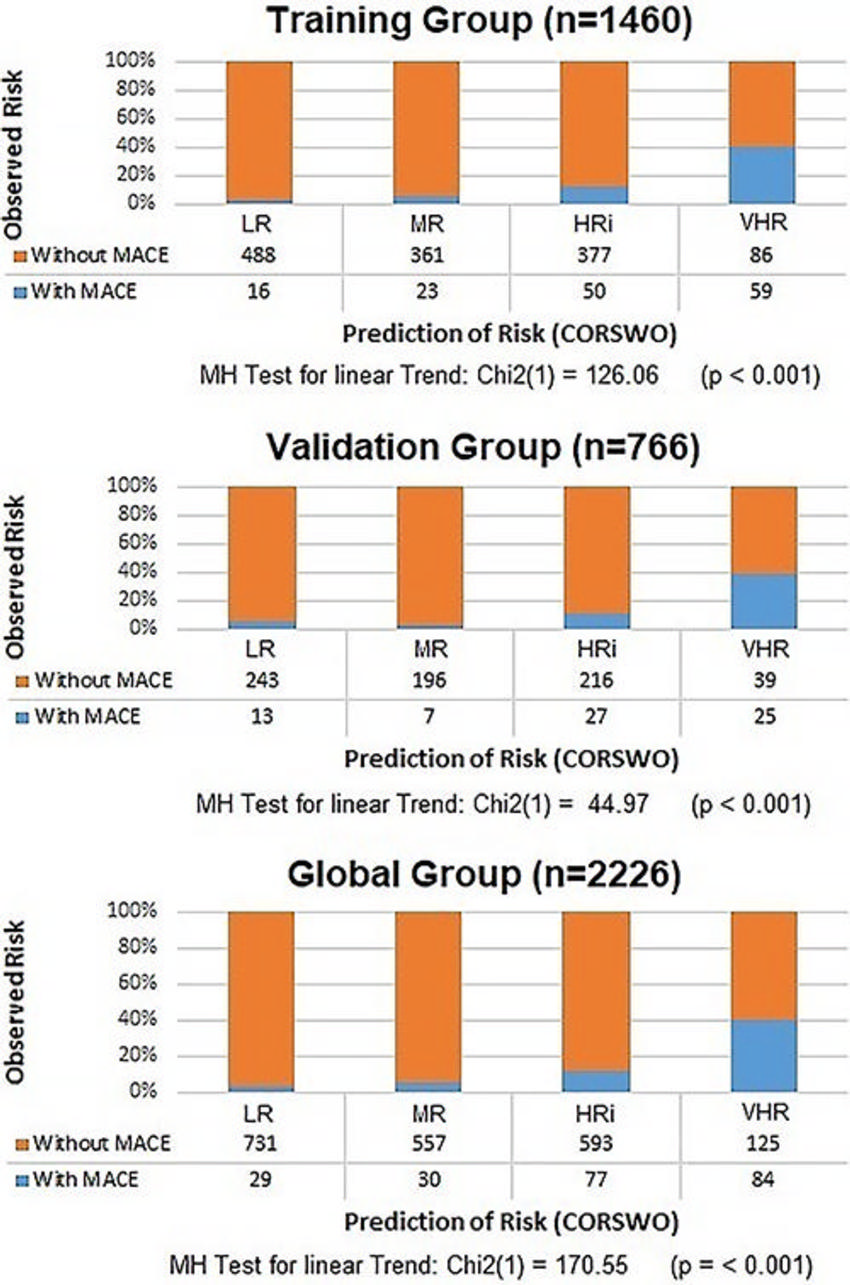 Using eight variables, the CORSWO calculated the risk of a cardiac event in patients and categorized them into four risk levels: low, moderate, high and very high.
